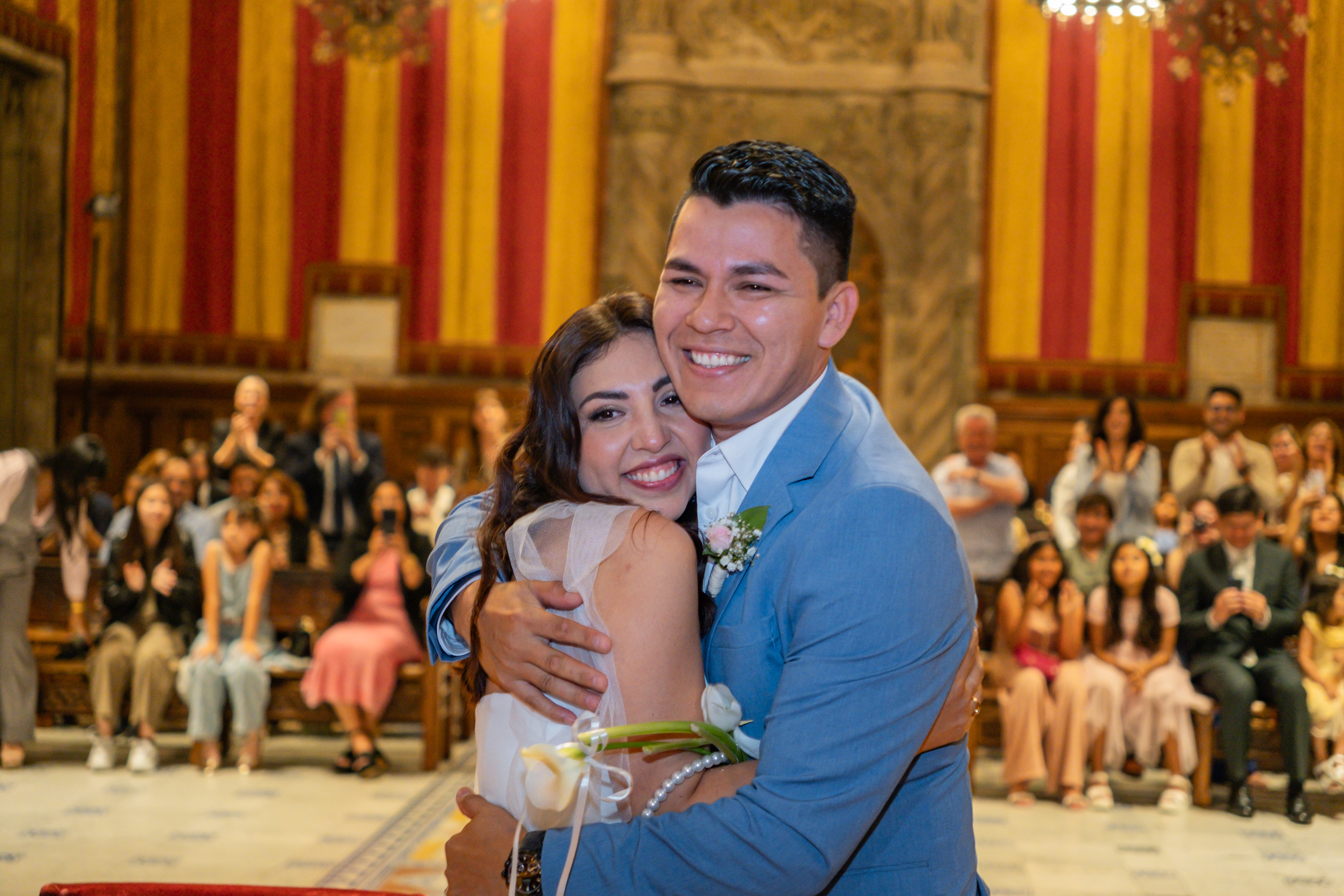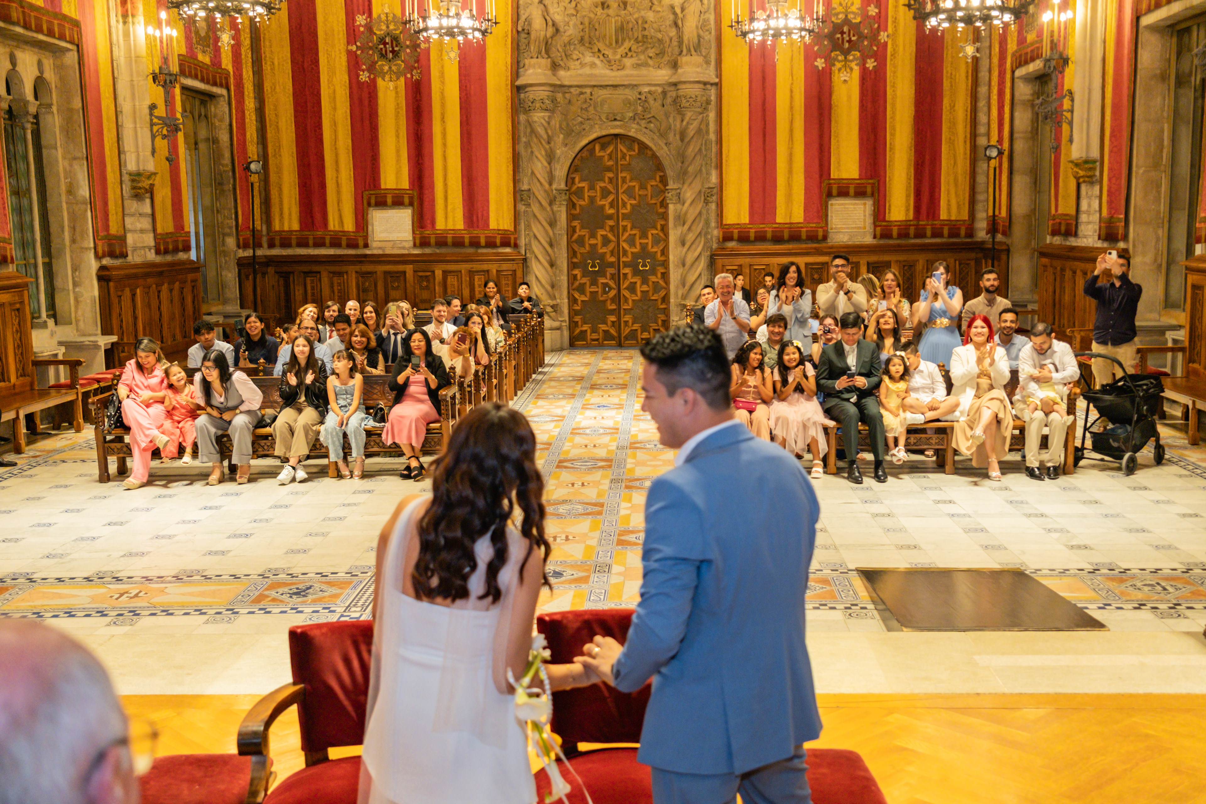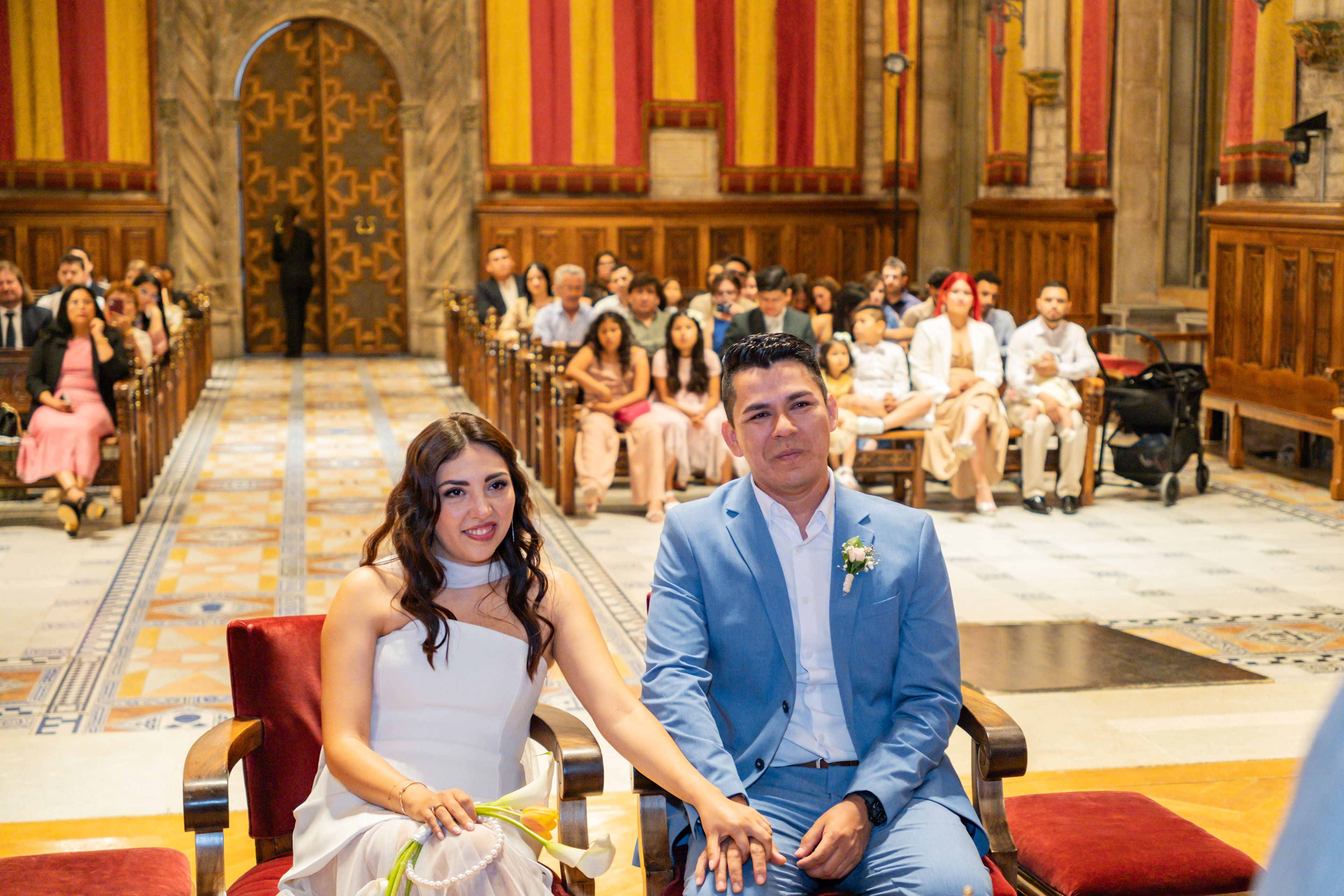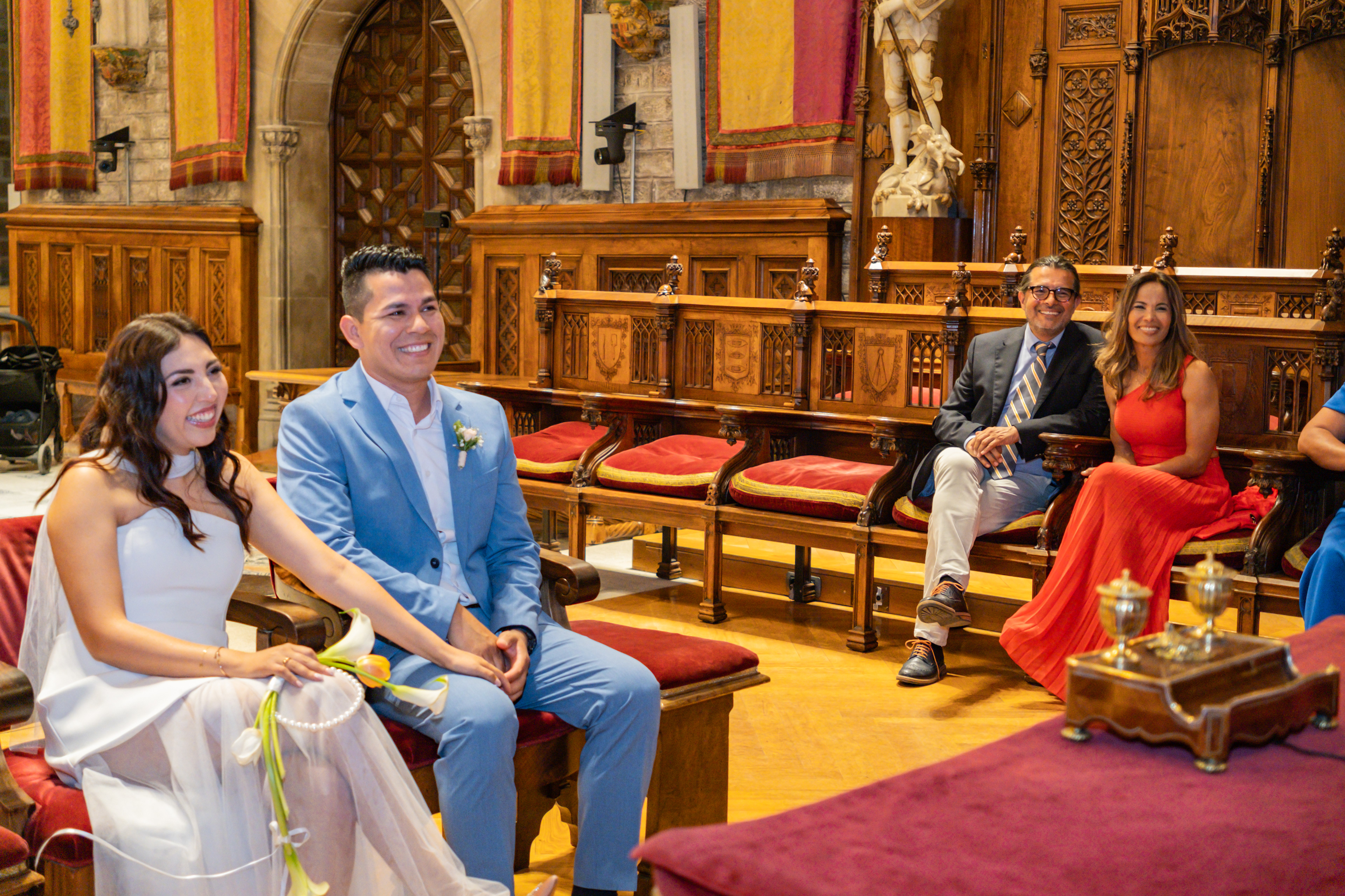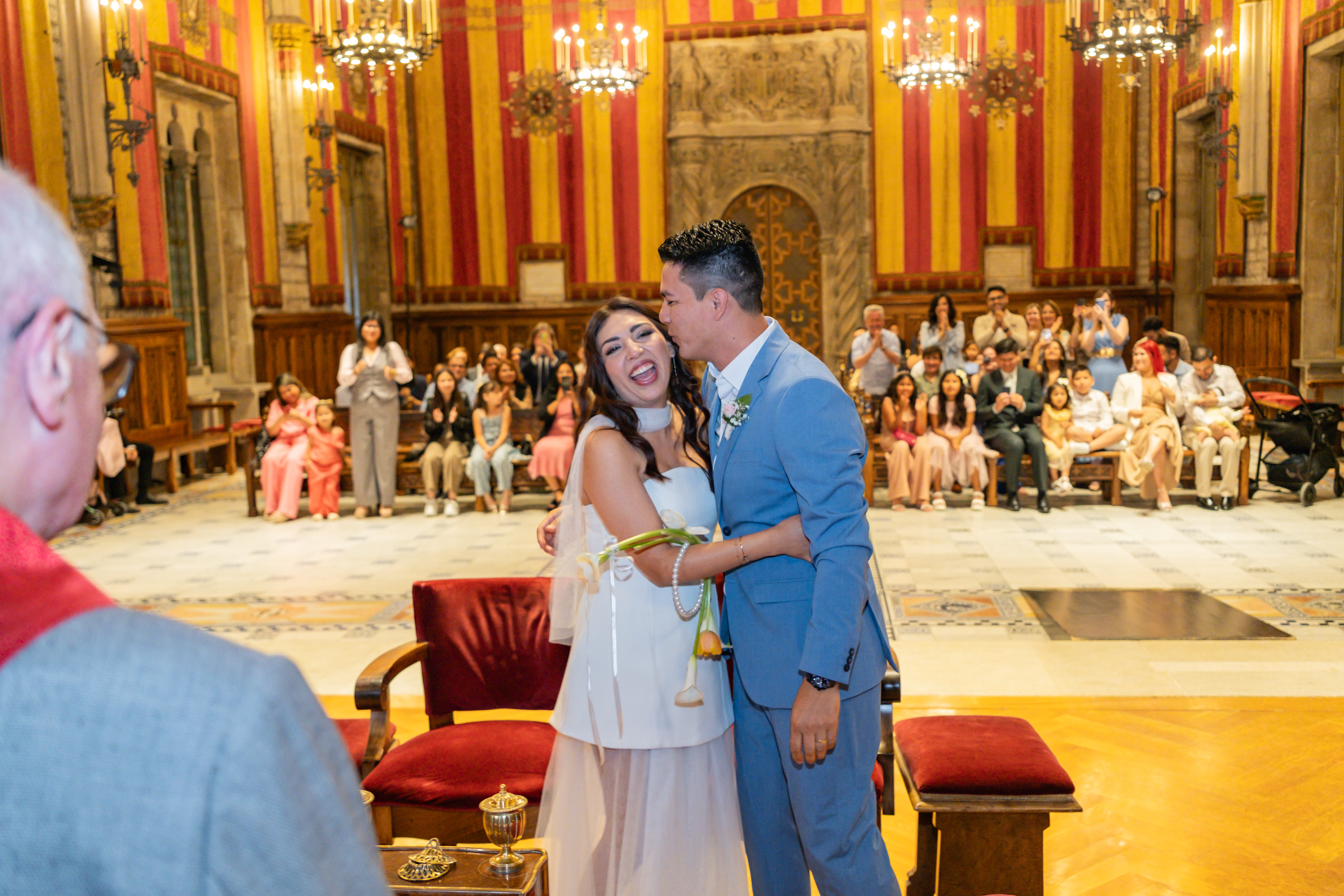 Boda intima realizada en el ayuntamiento de Barcelona. El banquete y fiesta se celebro en Mas Los Pinos.