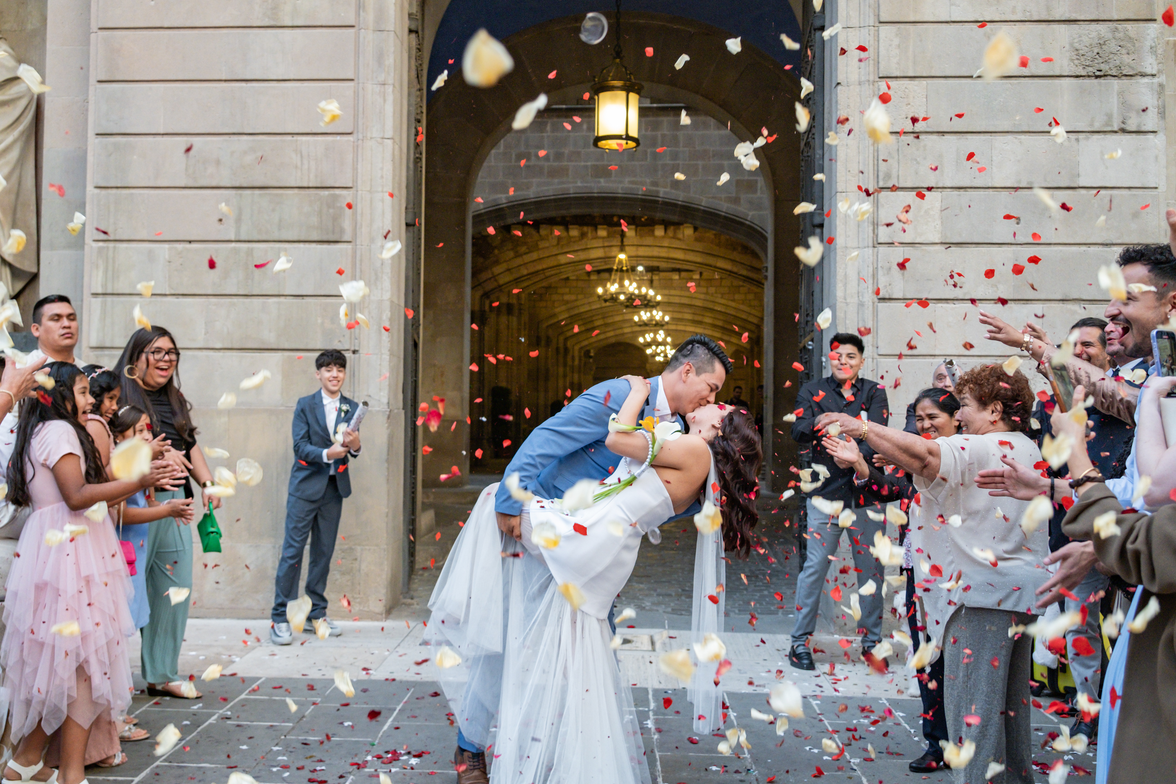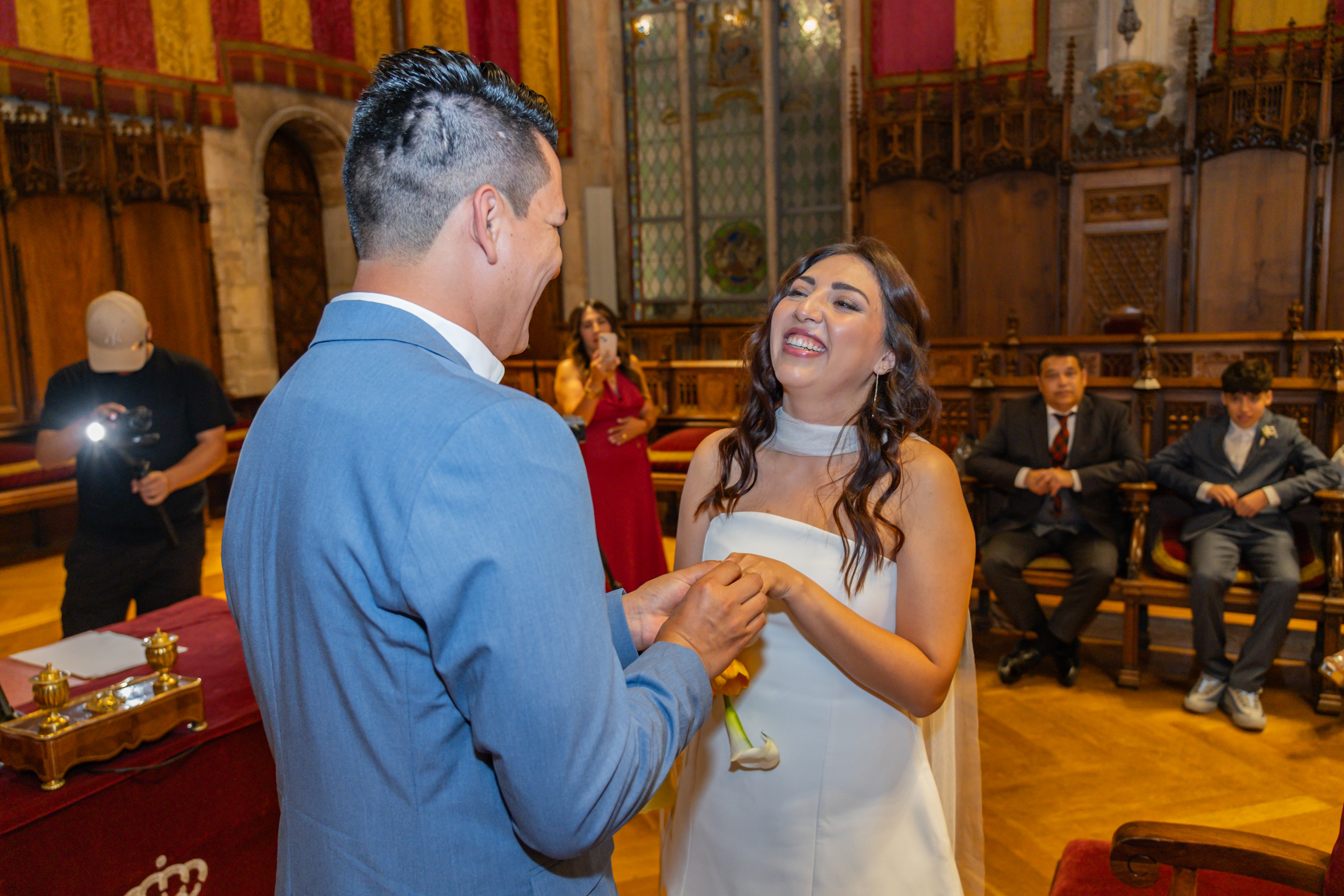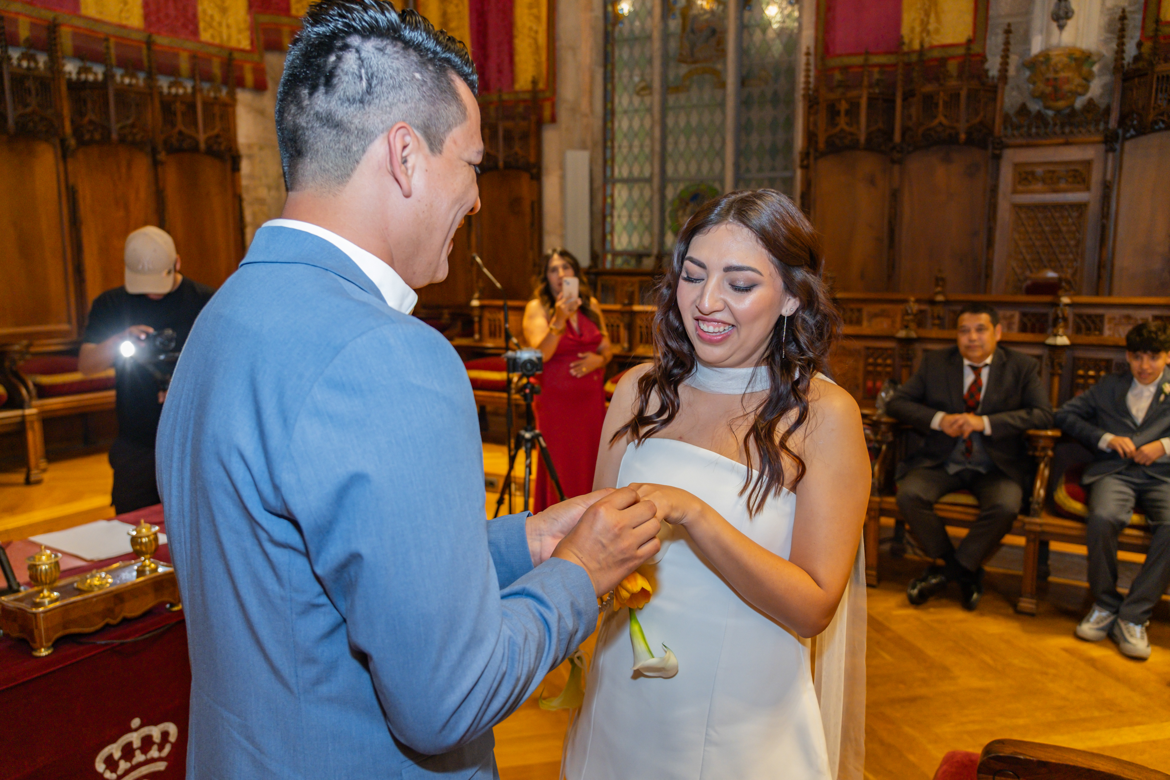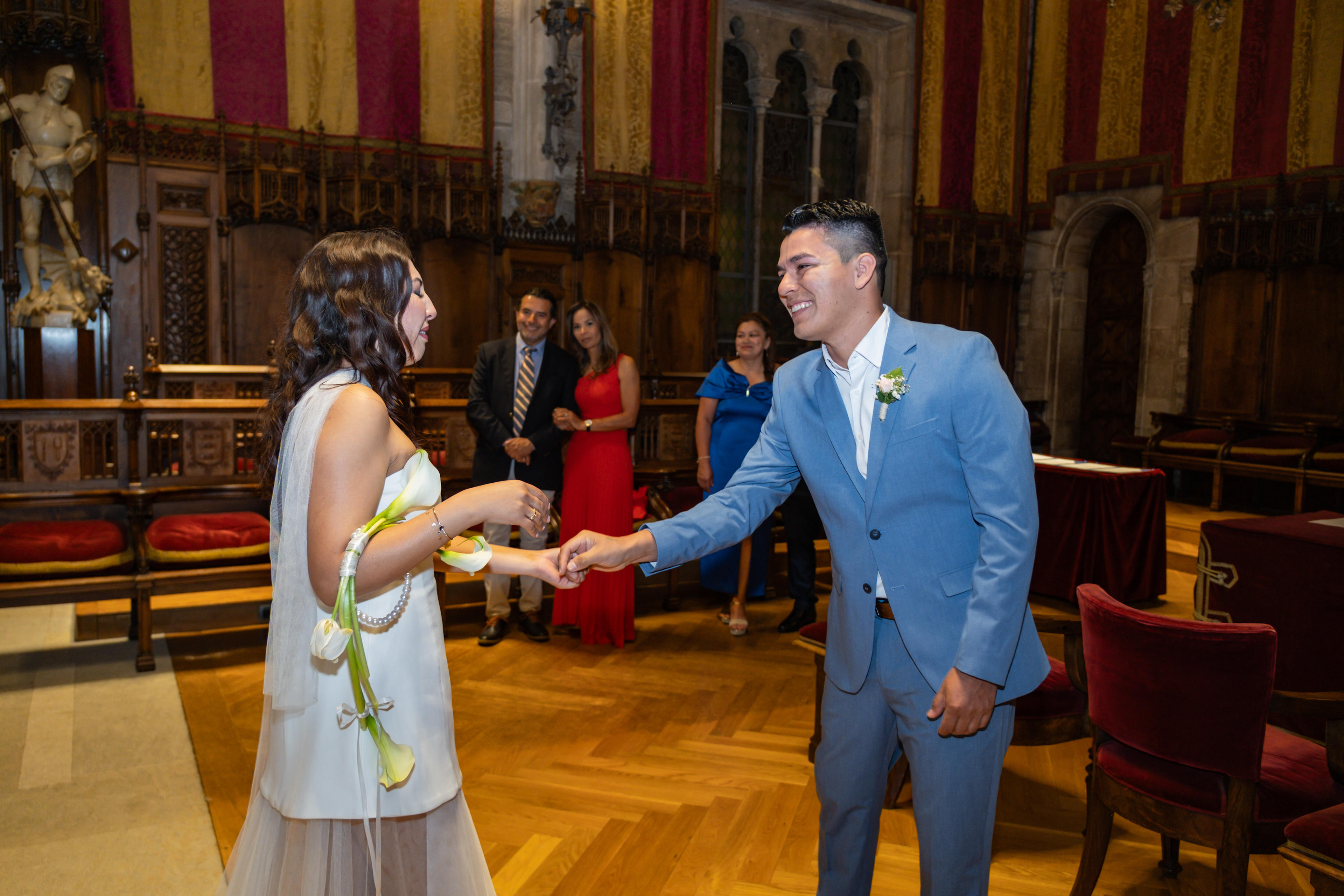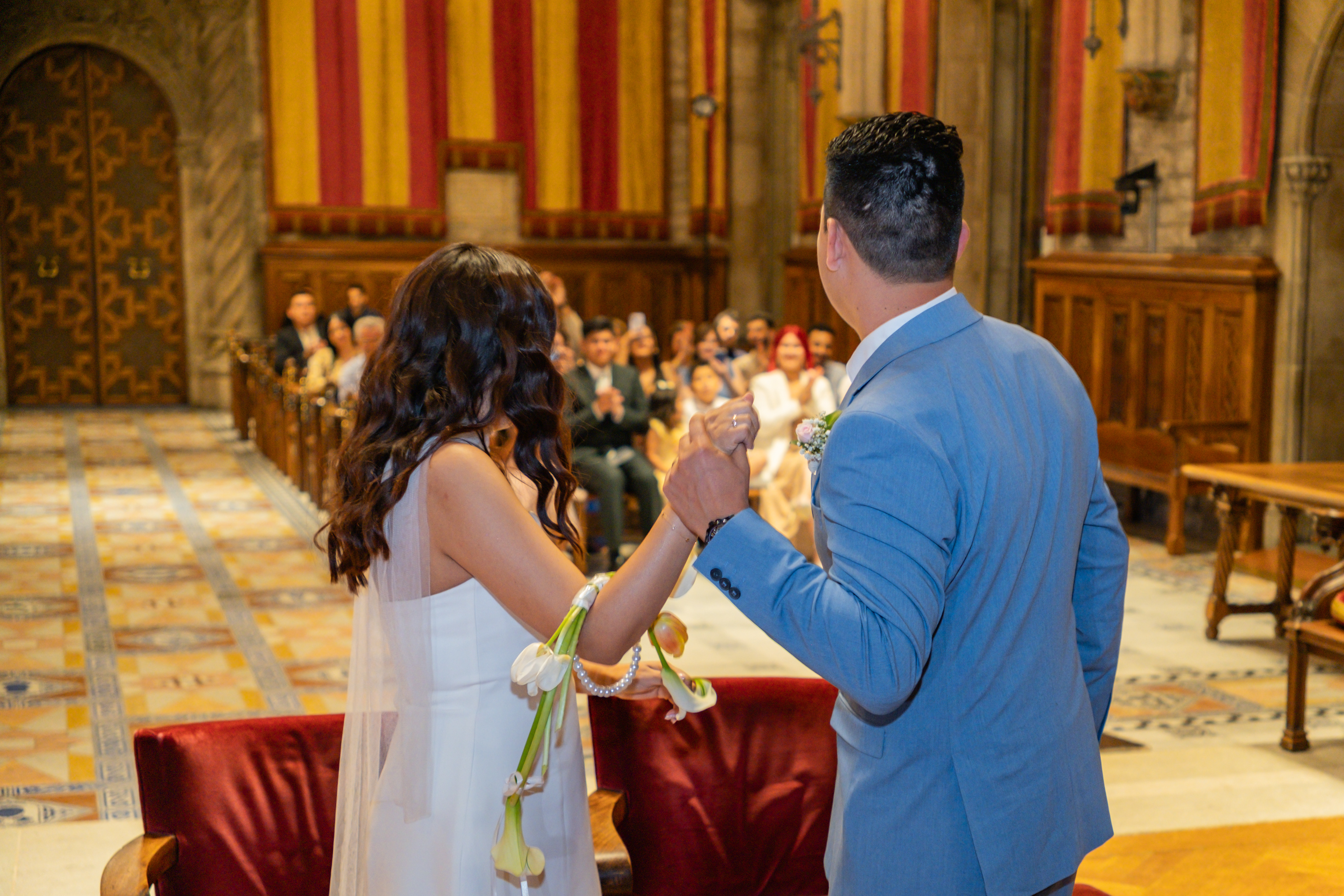Boda intima realizada en el ayuntamiento de Barcelona. El banquete y fiesta se celebro en Mas Los Pinos.