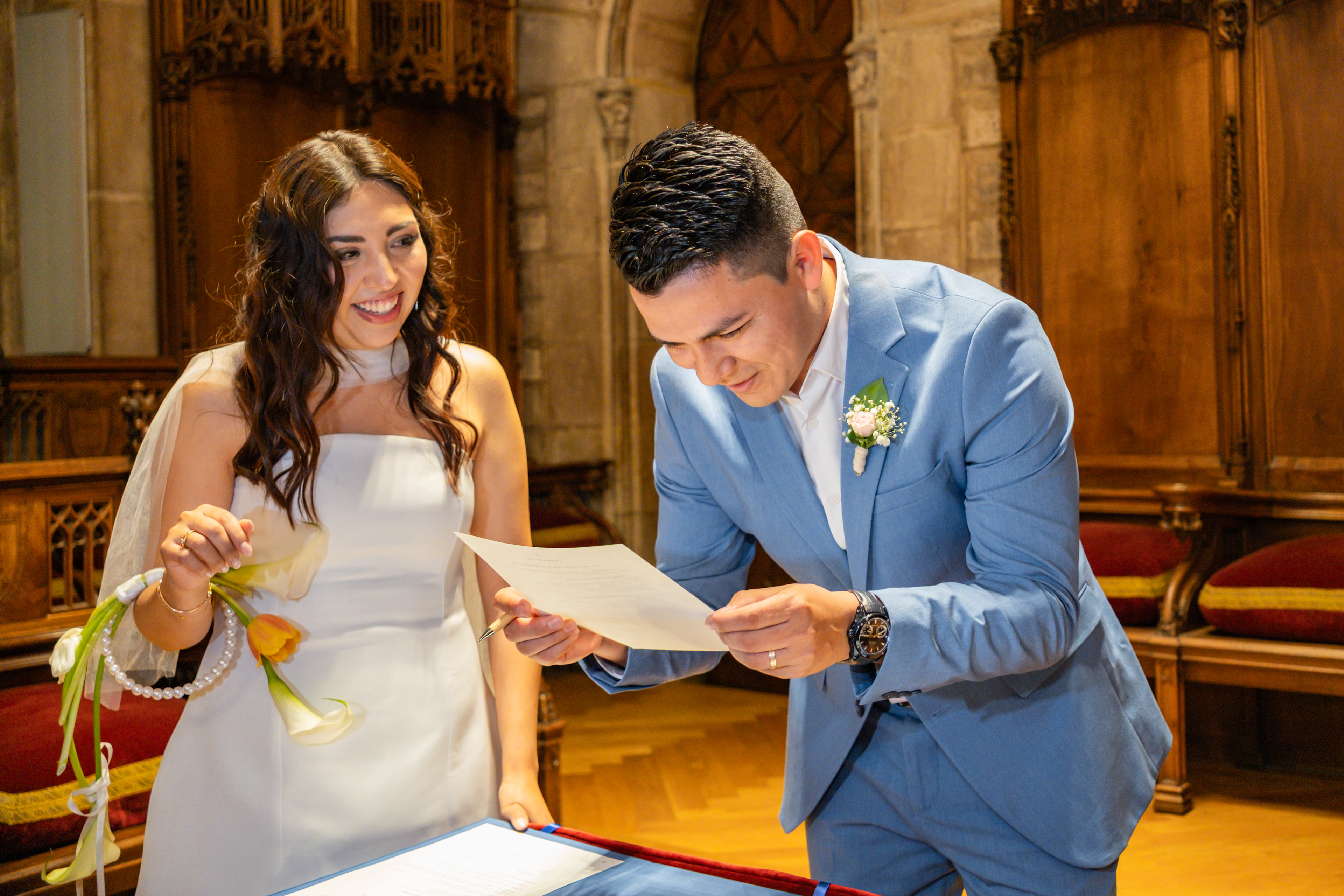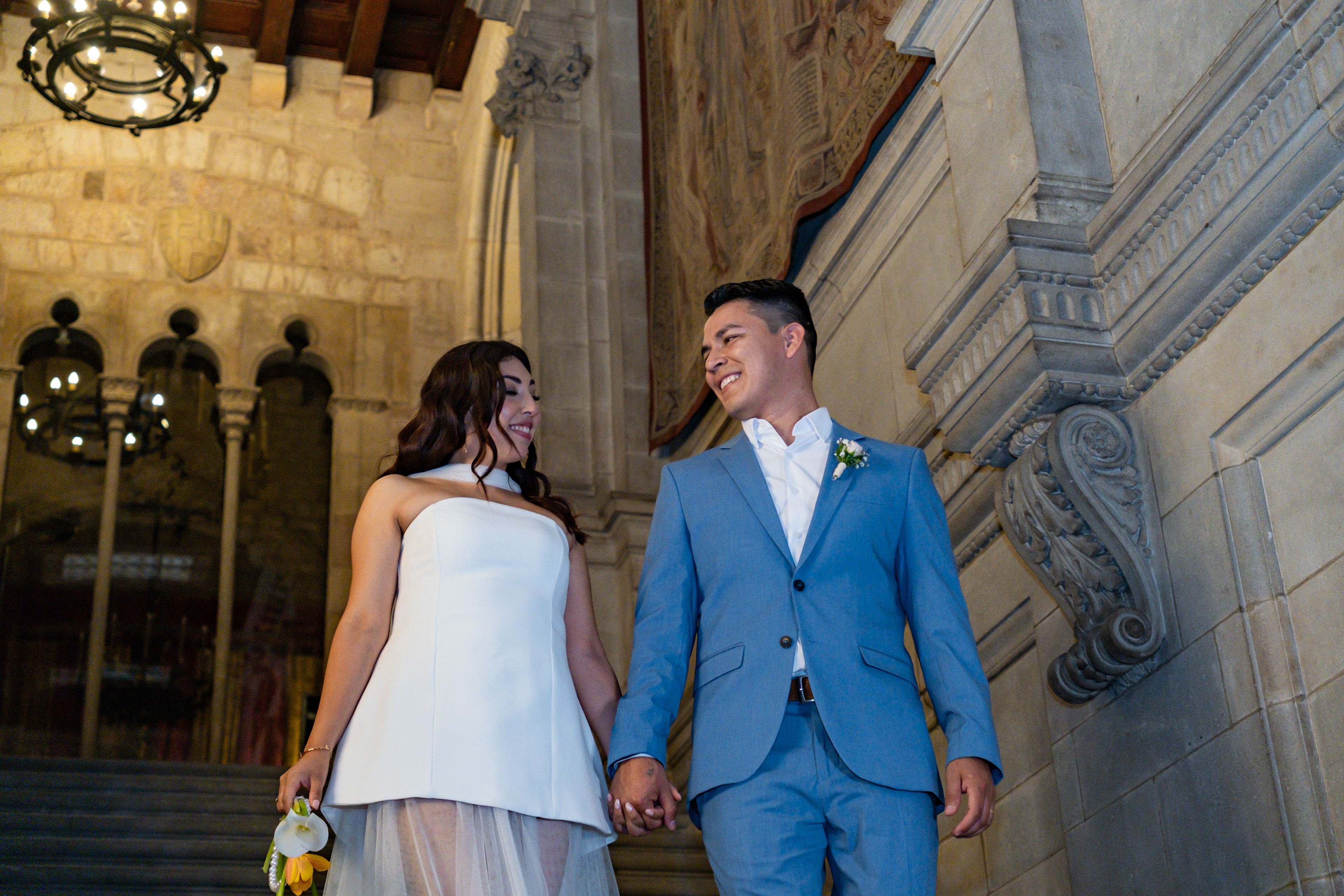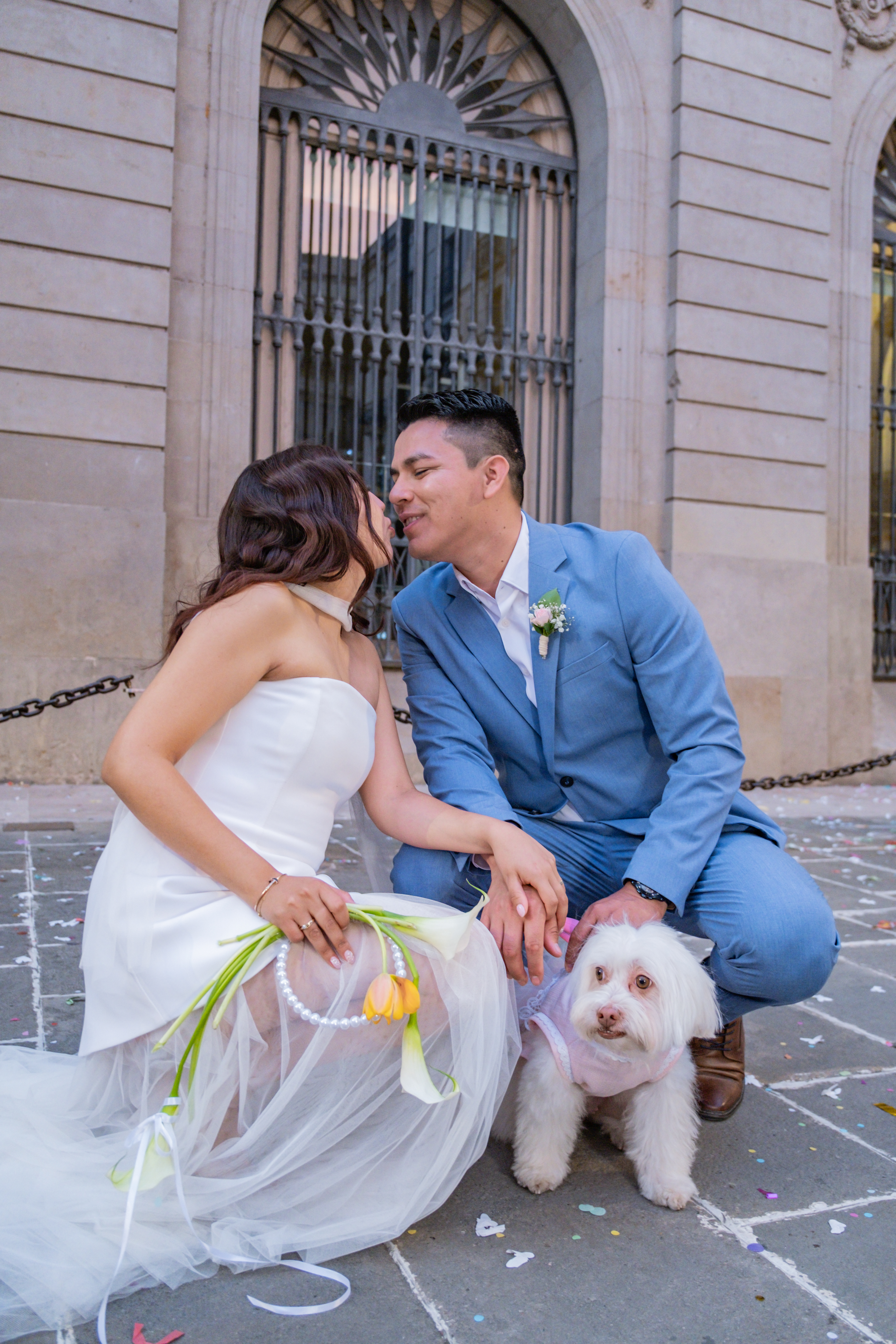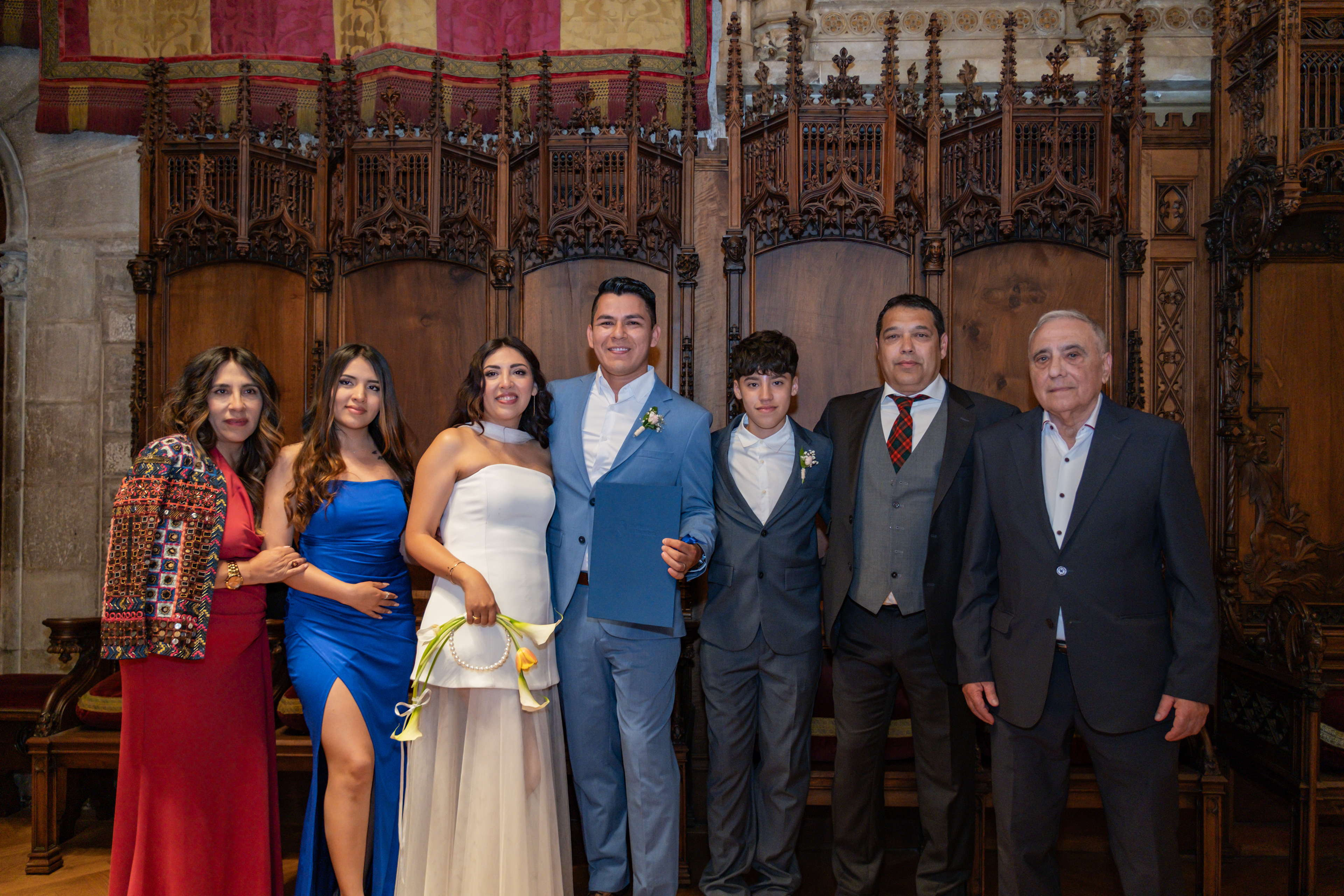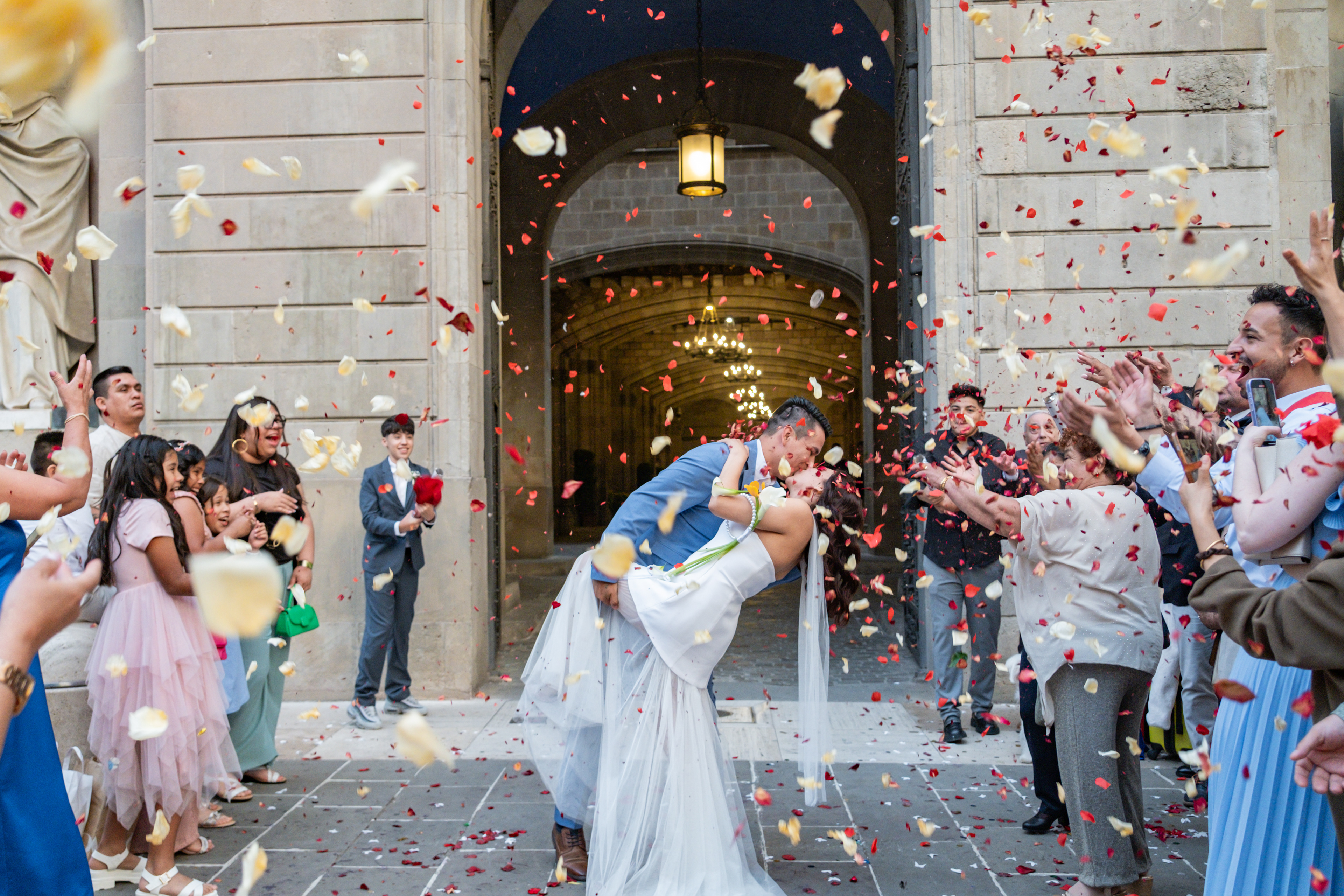 Boda intima realizada en el ayuntamiento de Barcelona. El banquete y fiesta se celebro en Mas Los Pinos.